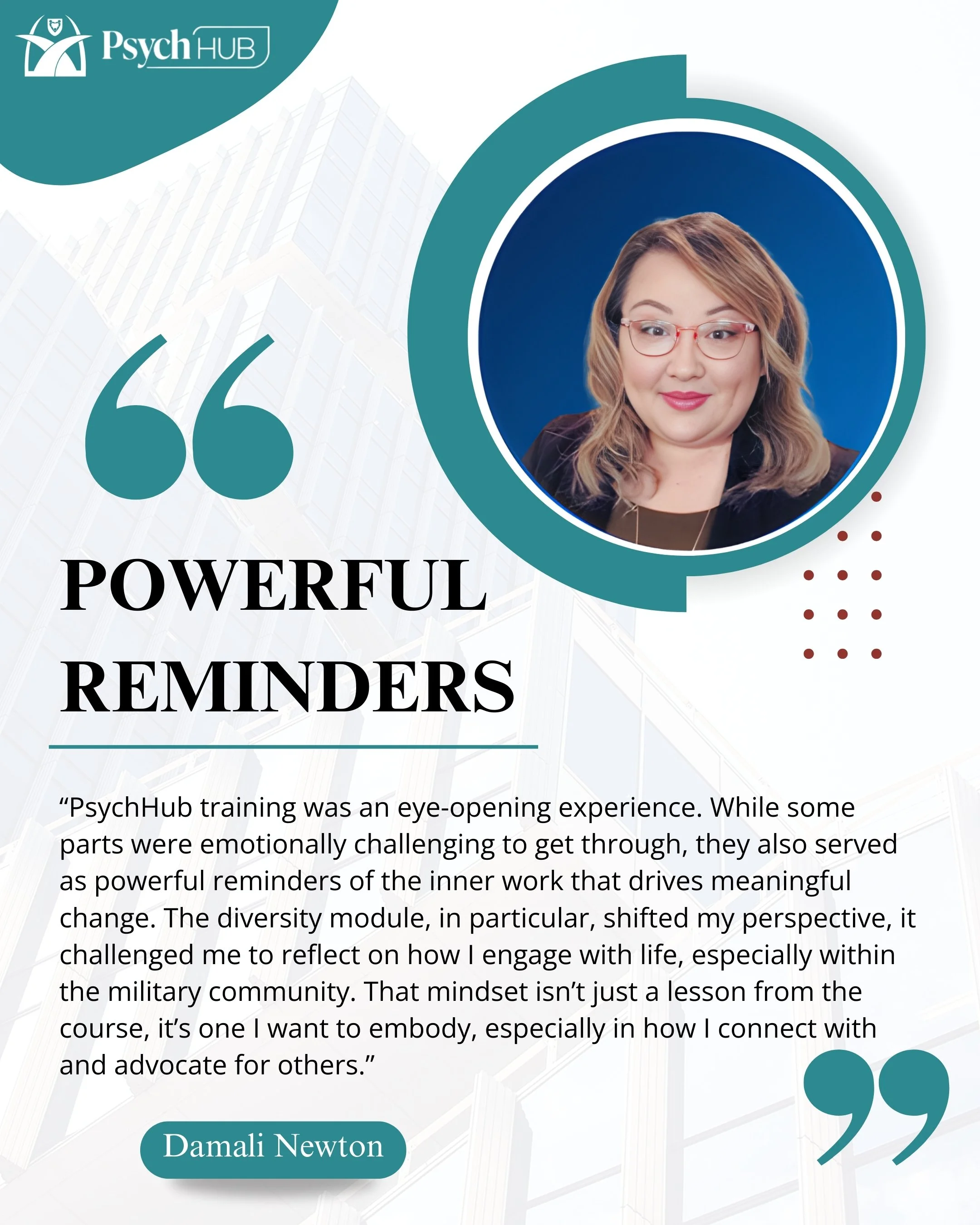 The Leadership Institute for Military Spouses by Military Spouse Advocacy Network is committed to supporting military spouses by providing free, virtually accessible mental wellness training. We have partnered with PsychHUB to equip military spouses with the skills needed to provide mental wellness education so that spouses can be more prepared for real military family life stressors and transitions.